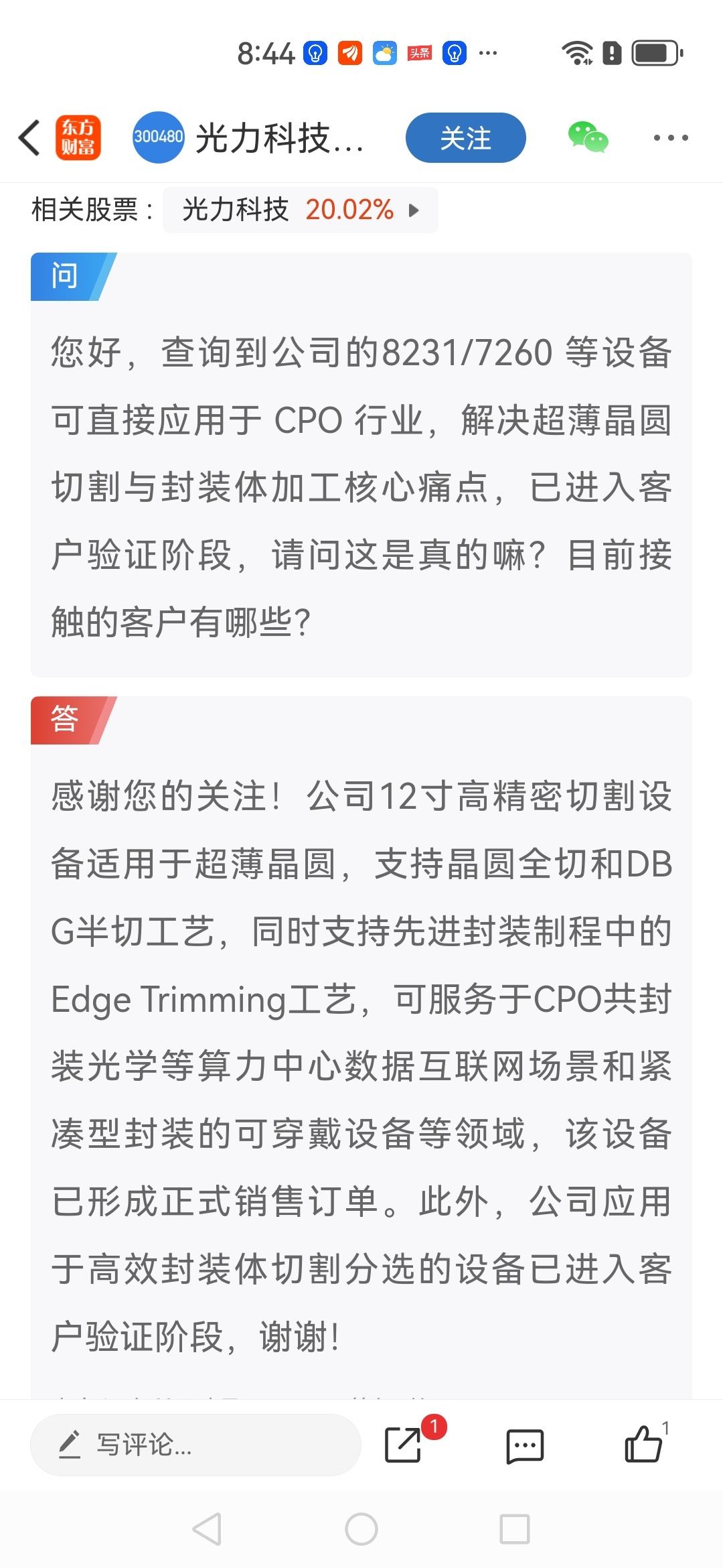 $光力科技(SZ300480)$ 昨夜美股市场,光通信概念股延续强势,Credo Technology大涨10.78%,康宁涨7.54%,Ciena科技涨6.78%,Lumentum涨4.56%。