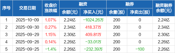 濮阳惠成:融资净偿还1024.26万元,融资余额2.24亿元(10-09)