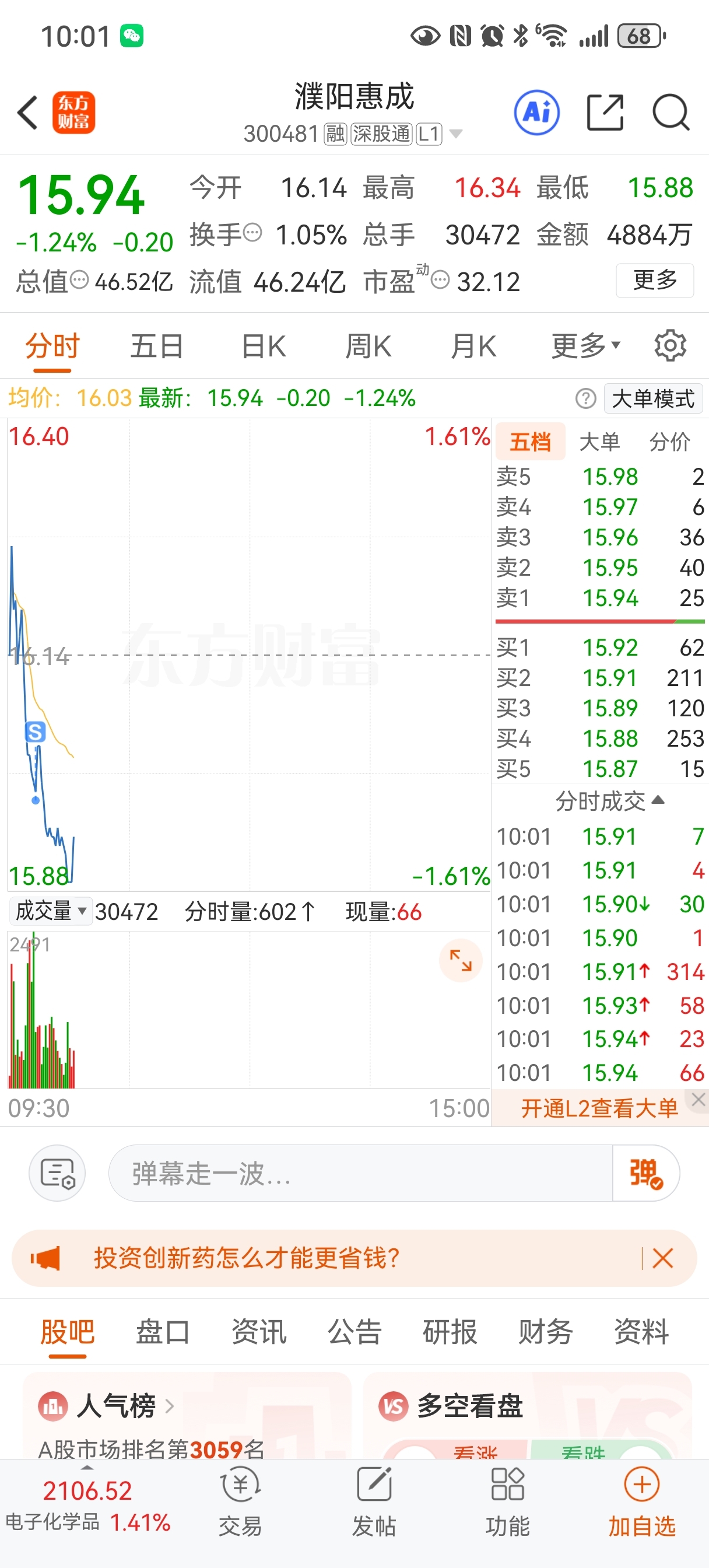 $濮阳惠成(SZ300481)$ 见好就收,差不多可以回调了。