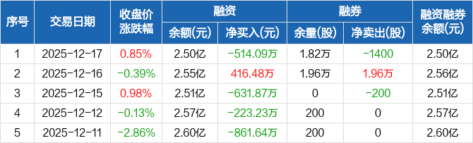 濮阳惠成:融资净偿还514.09万元,融资余额2.5亿元(12-17)