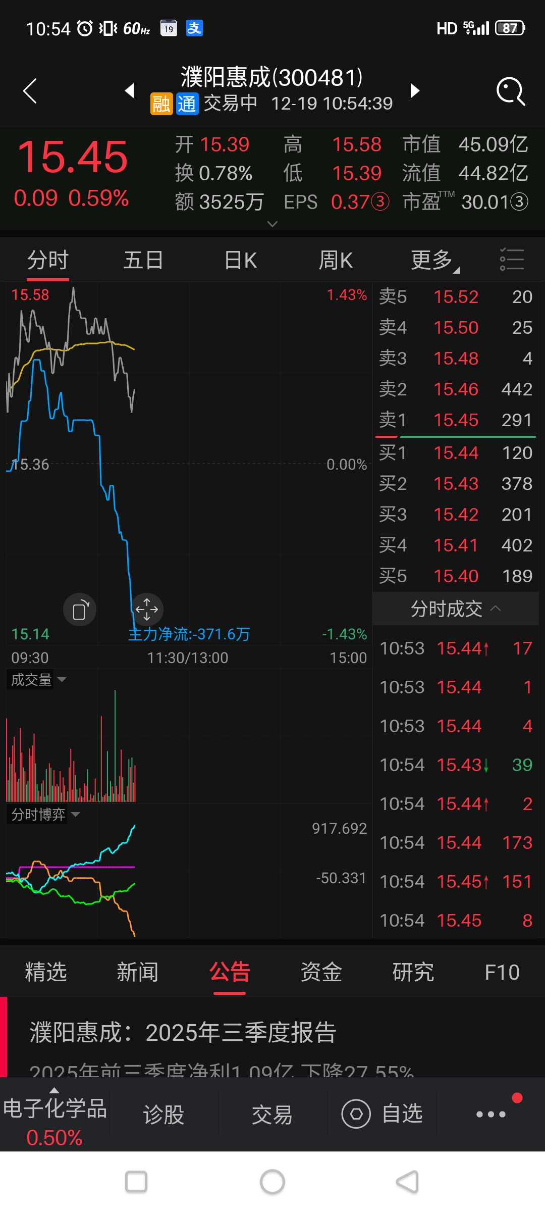 $濮阳惠成(SZ300481)$ 资金流出,可以我丑我先走