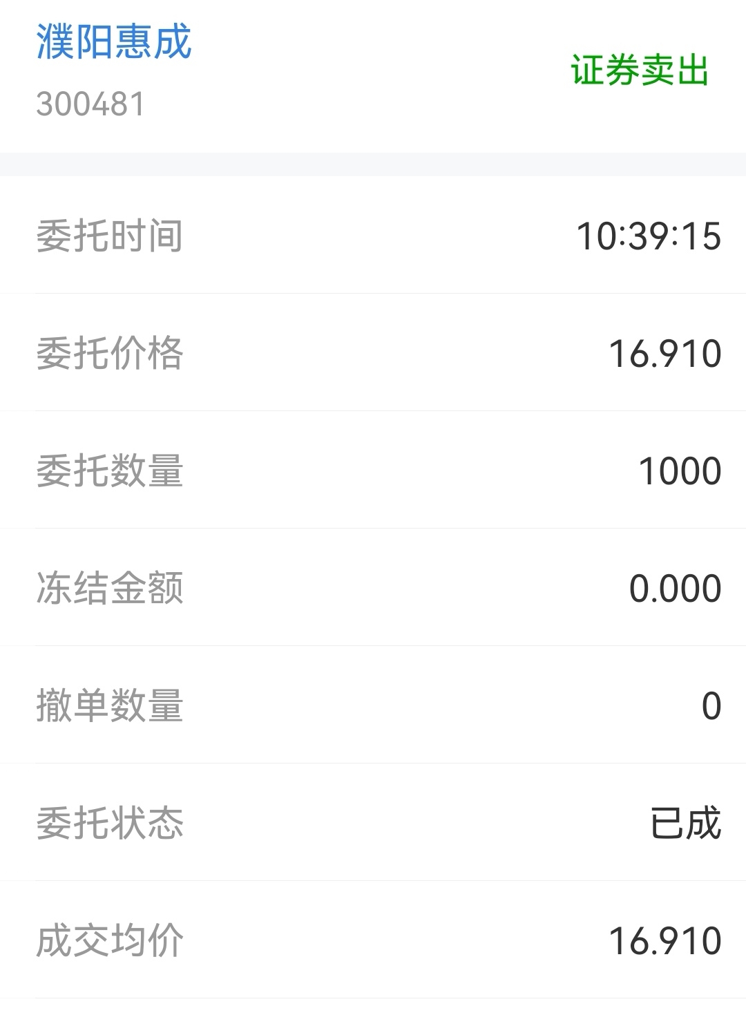 $濮阳惠成(SZ300481)$ 卖出了
