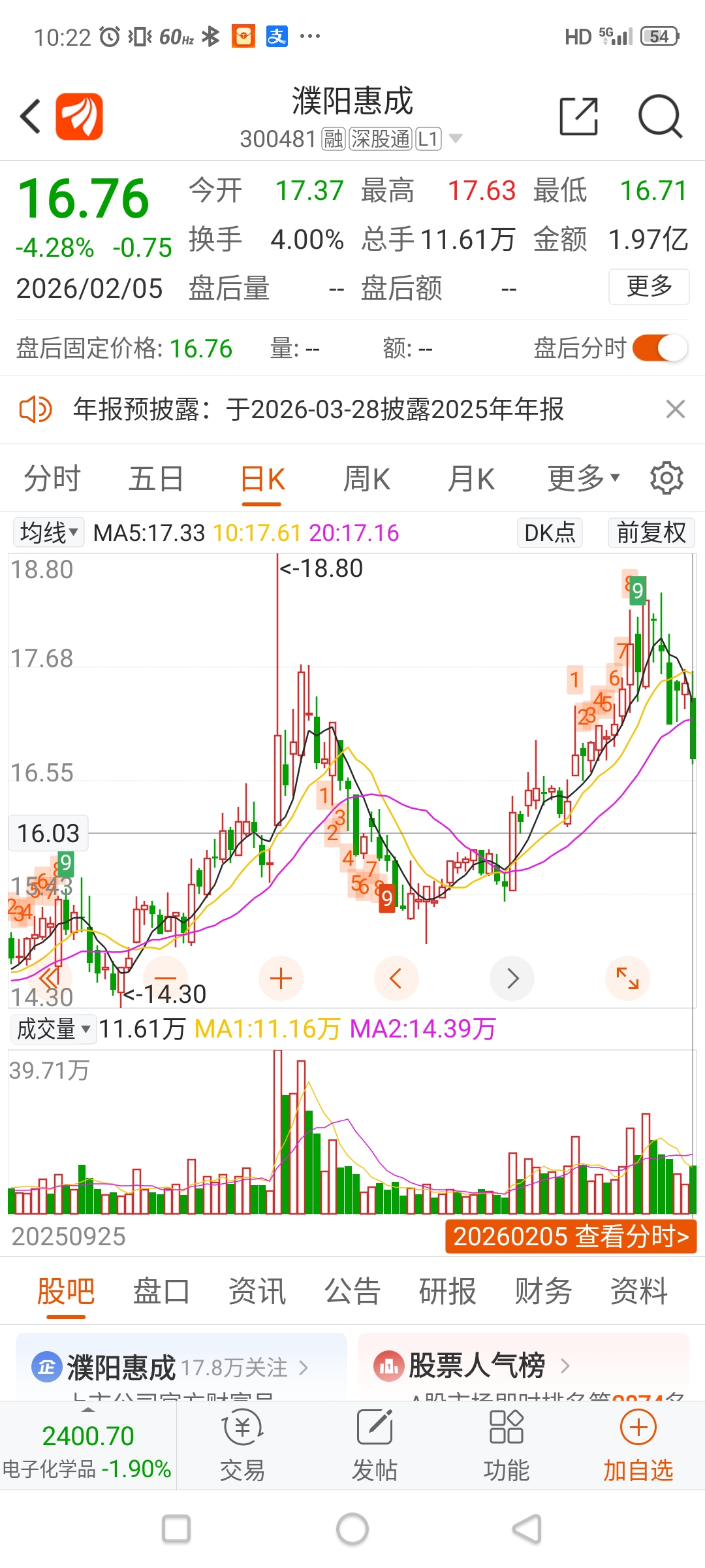 $濮阳惠成(SZ300481)$ 今天砸出很多恐慌筹码,耐性持有必有厚报