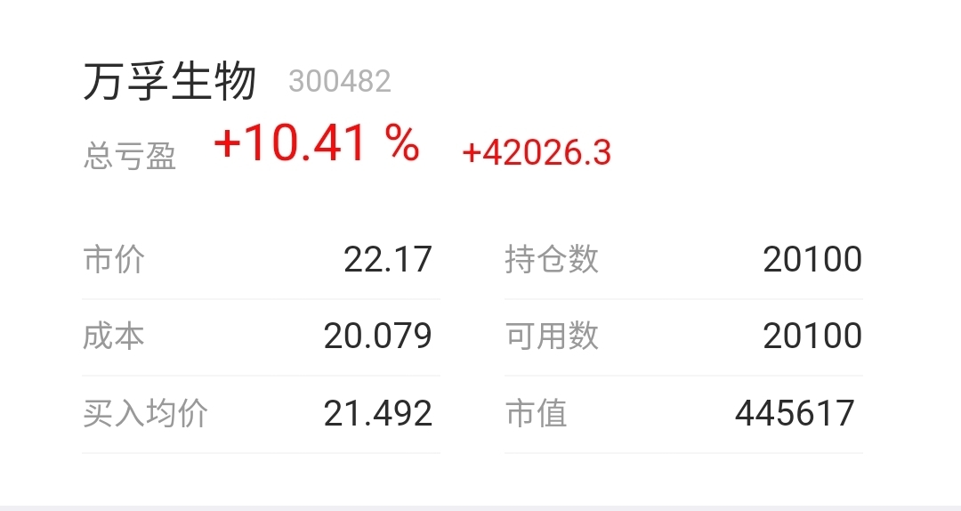 $万孚生物(SZ300482)$ 卖了一大半,留了200手陪兄弟们
