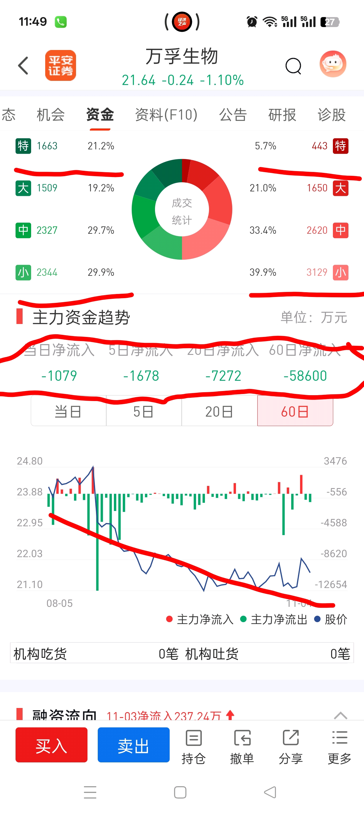 $万孚生物(SZ300482)$ 全是散户在买,哪里有主力!这么多日一直在净流出!