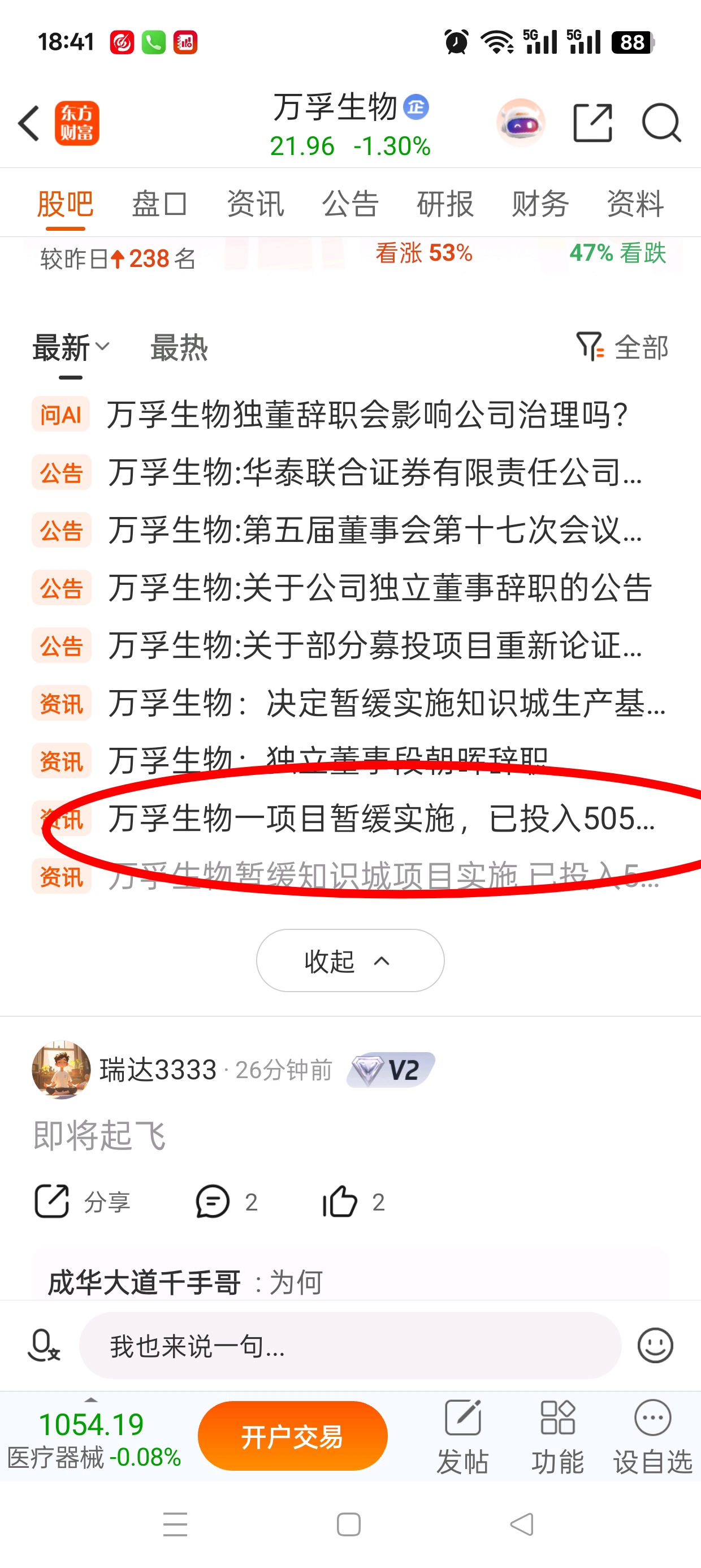$万孚生物(SZ300482)$ 怪不得尾盘跳水,怪不得一直跌,原来是项目爆雷,已经投入的五千多万就这么打水漂吗?太对不起投资者,怎么给投资者一个合适的解释!