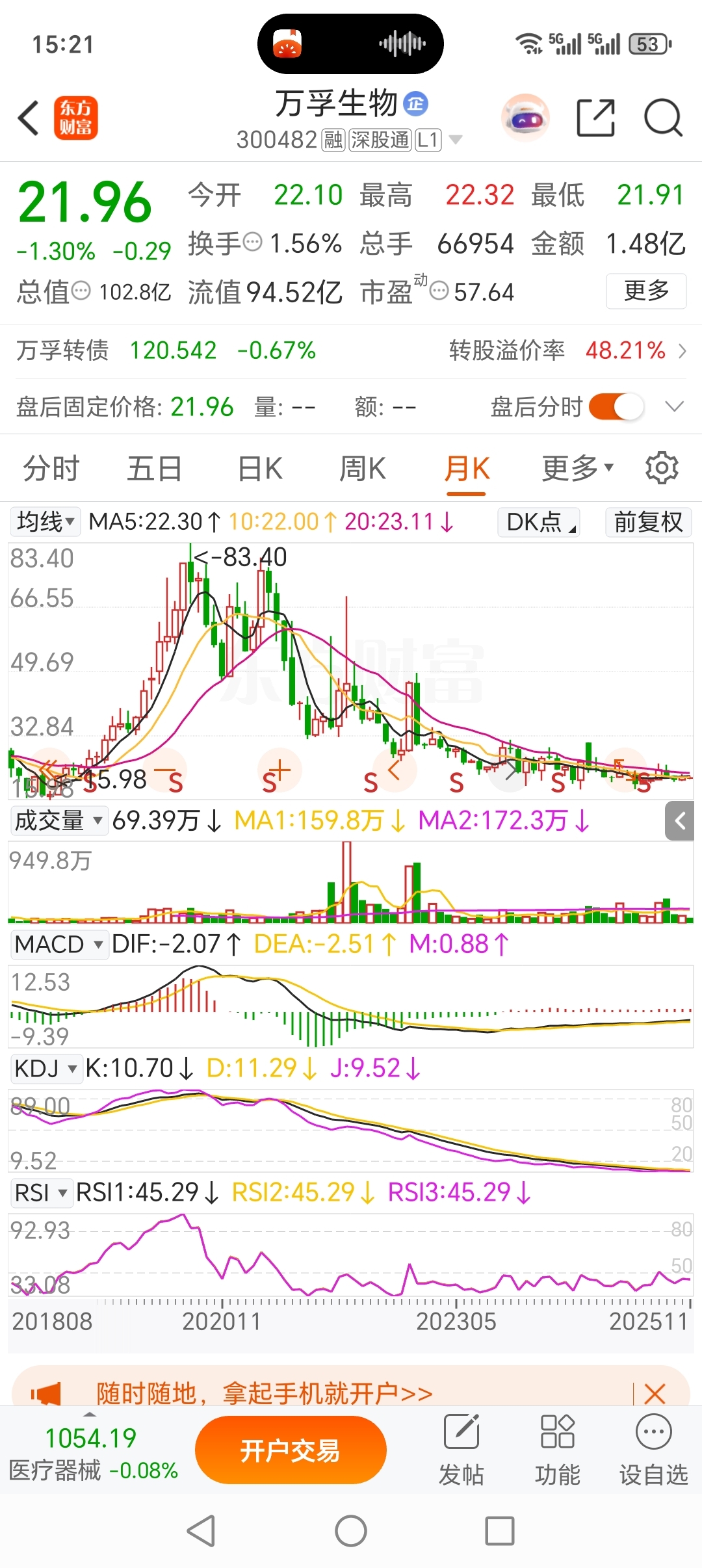 $万孚生物(SZ300482)$ 低位利空是利好,周一逢低加仓,月线还在三千点一带徘徊呢