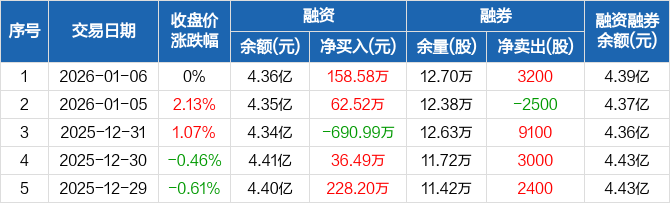万孚生物:融资净买入158.58万元,融资余额4.36亿元(01-06)