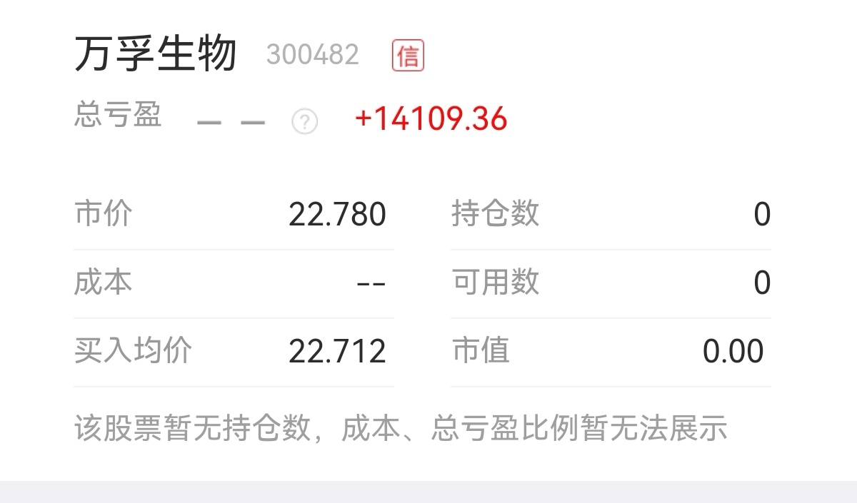 $万孚生物(SZ300482)$ 太可怕了,一直向下头也不回,最高盈利20多个的。真丧良心啊。不知道这次被套的人又要多久才能解套了。本以为洗一下浮筹的,结果是人家主力把货都出给我们散户了。今天没跑又要亏到老本了。