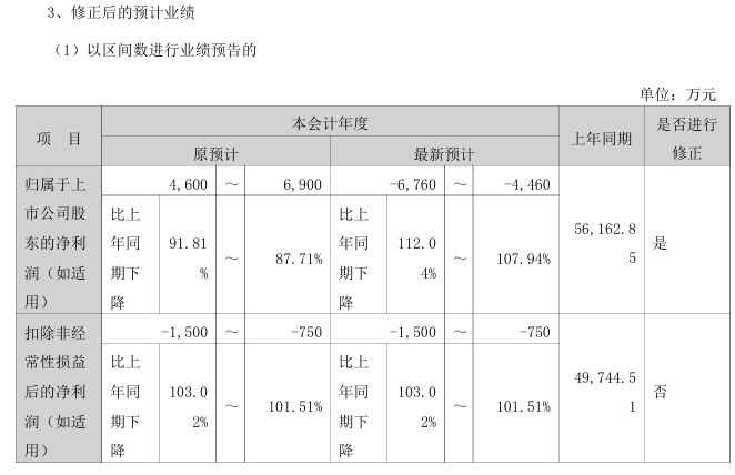值得注意的是,本次修正仅涉及归母净利润,扣除非经常性损益后的净利润指标未发生变动,仍预计亏损750万元至1500万元。