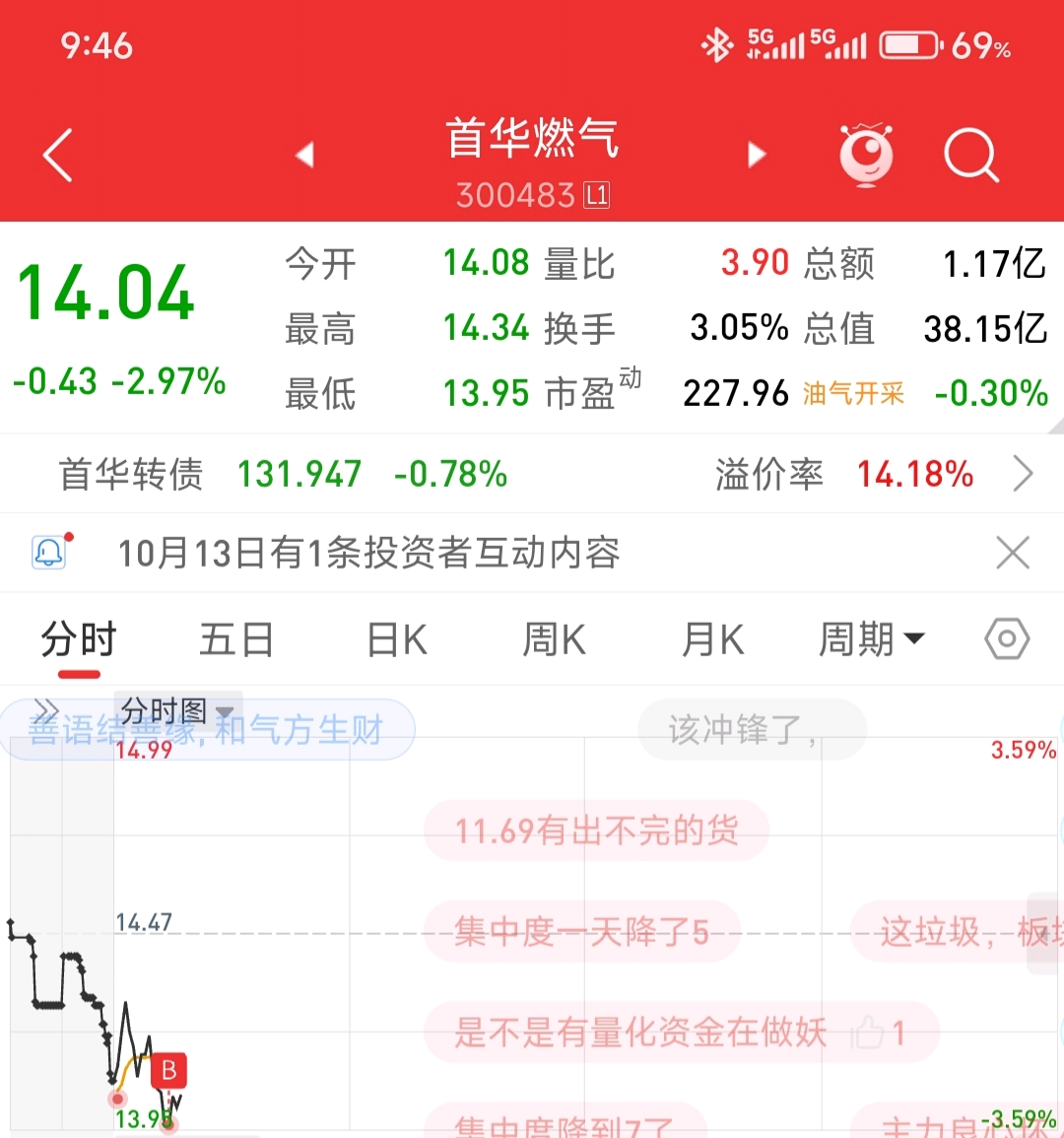 14.03 13.96分别加仓,14.40走一波,给机会做T一定要把握!!!!!