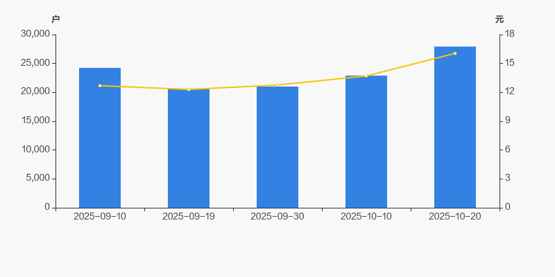 自2025年9月19日以来,公司股东户数连续3期上涨,截至目前增幅为35.23%。2025年9月19日至2025年10月20日区间股价上涨30.49%。