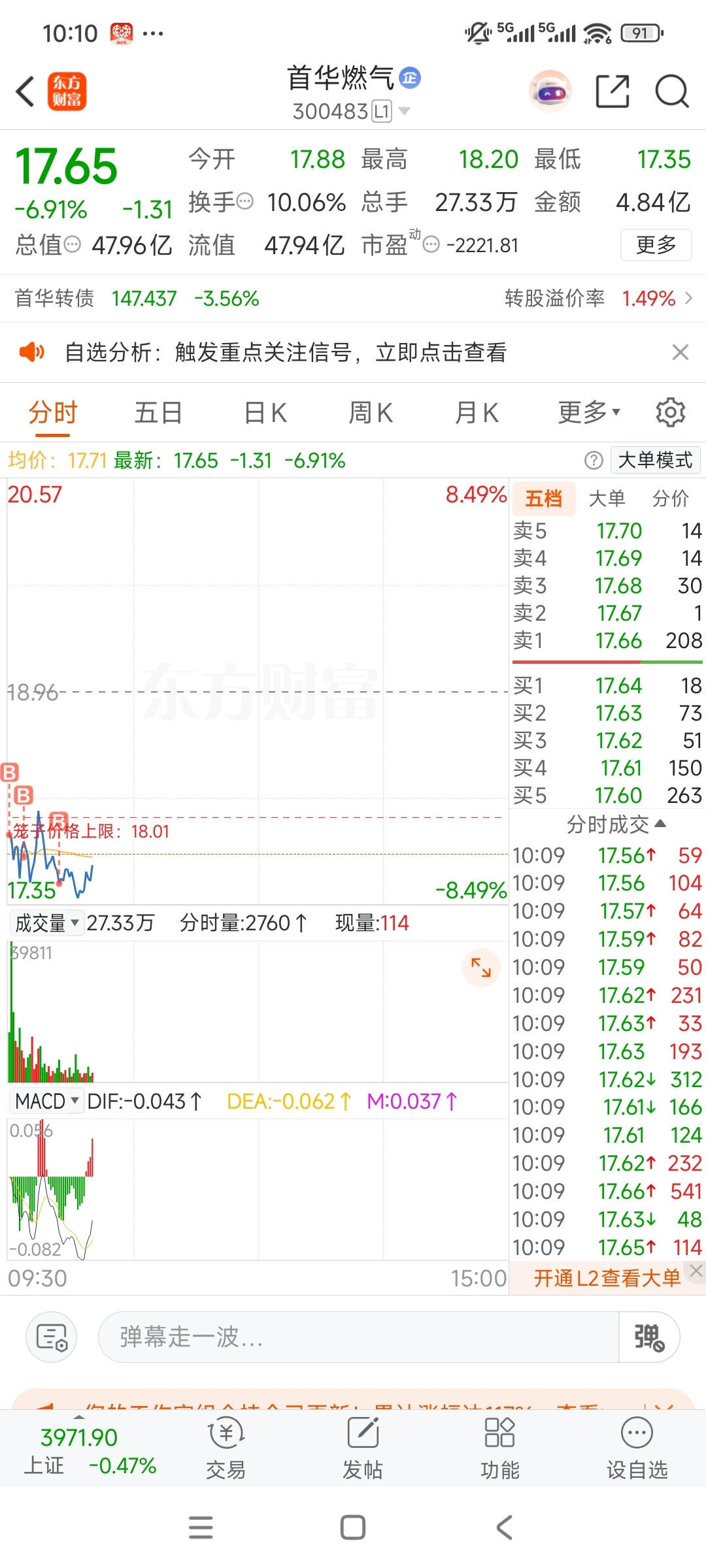 $首华燃气(SZ300483)$ 燃气今天会有不错的表现,长春燃气封板之后手滑,燃气也会跟着大涨,已经布局完了。这次降温很快,很急,所以只能做超短线。