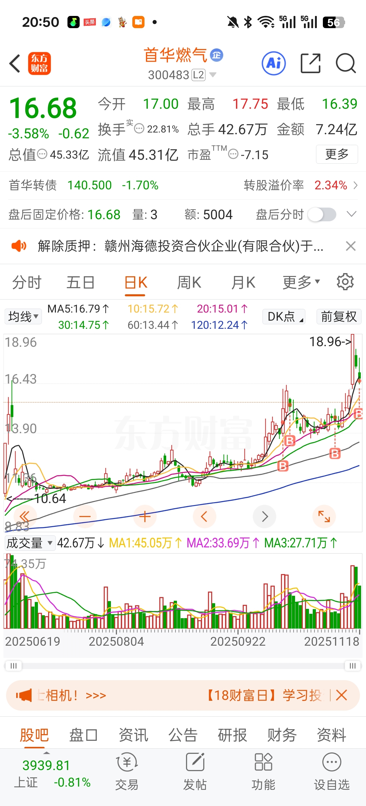$首华燃气(SZ300483)$ 只买不卖,还没到卖点,珍惜筹码!