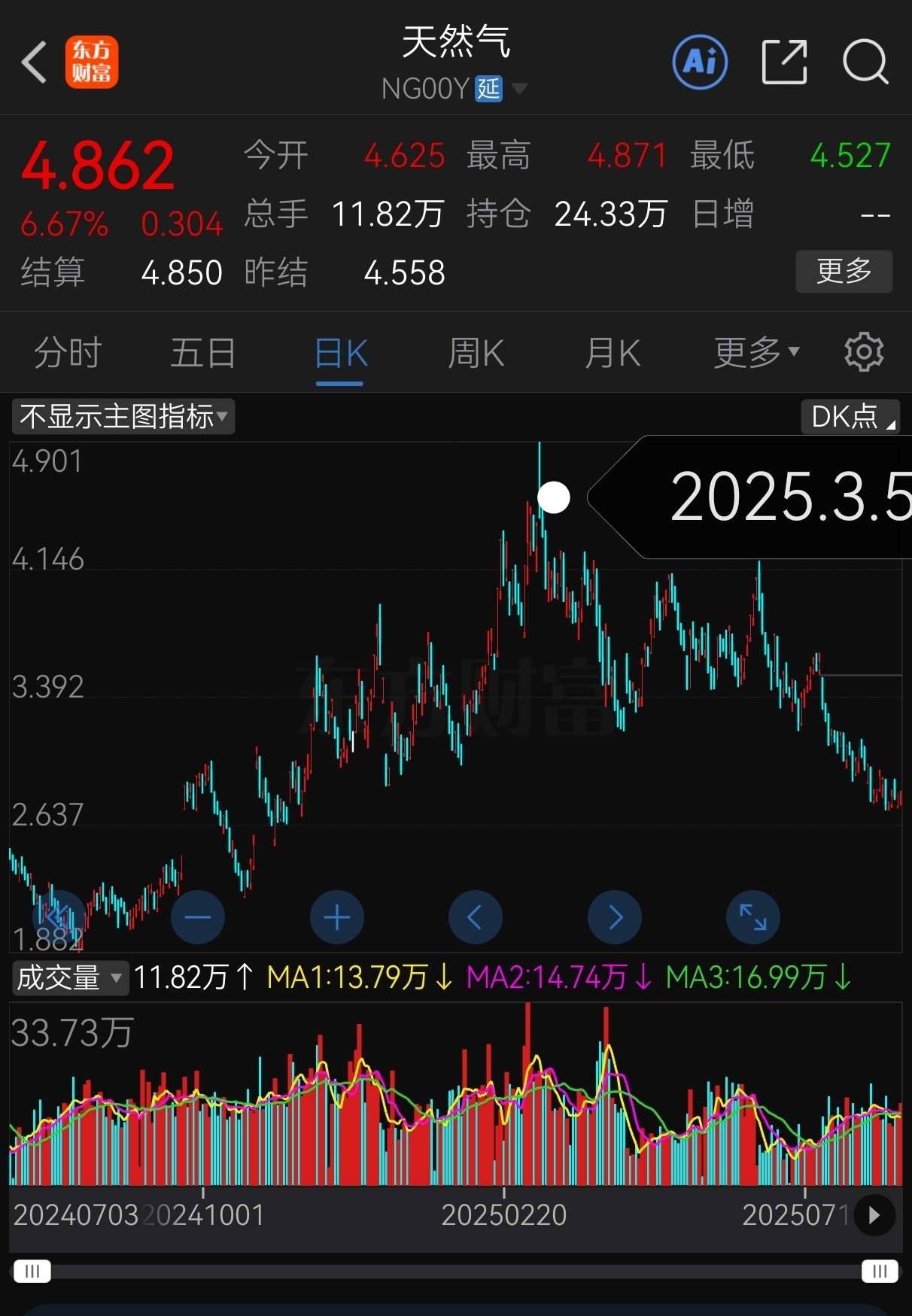 借鉴去年尾今年春国际天然气期货(主力合约)的价格走势(即涨到今年3月初呢),可以预期: 国际天然气期货价格未来几个月大概率继续震荡上行,至少要涨到2026年元旦后或马年春节后吧?!