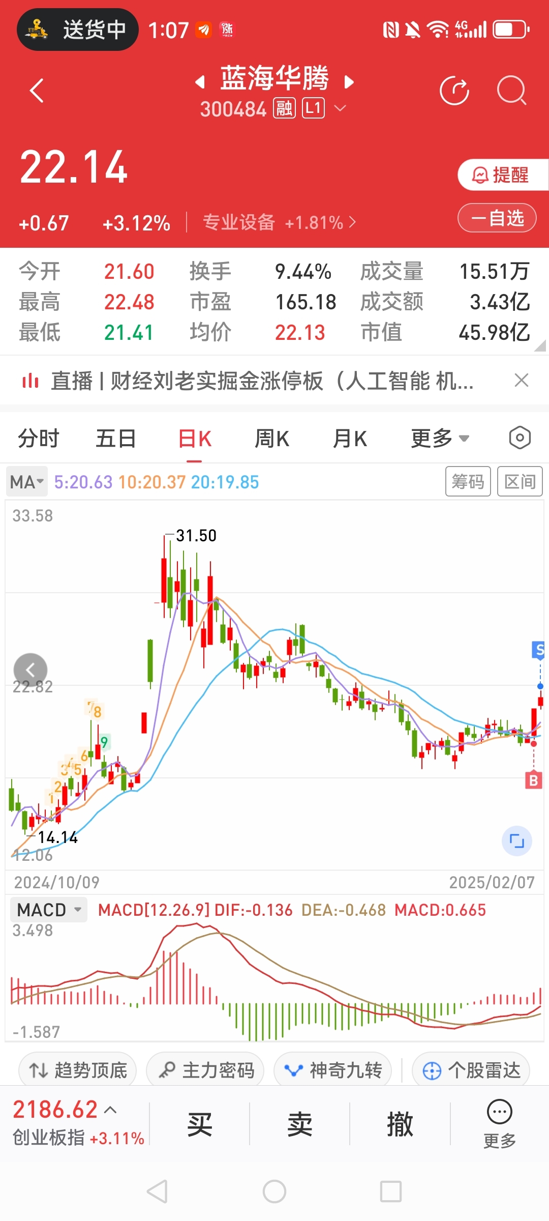 $蓝海华腾(SZ300484)$ 上涨乏力,见好就收,先走了!