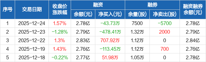 蓝海华腾:融资净偿还43.73万元,融资余额2.78亿元(12-24)