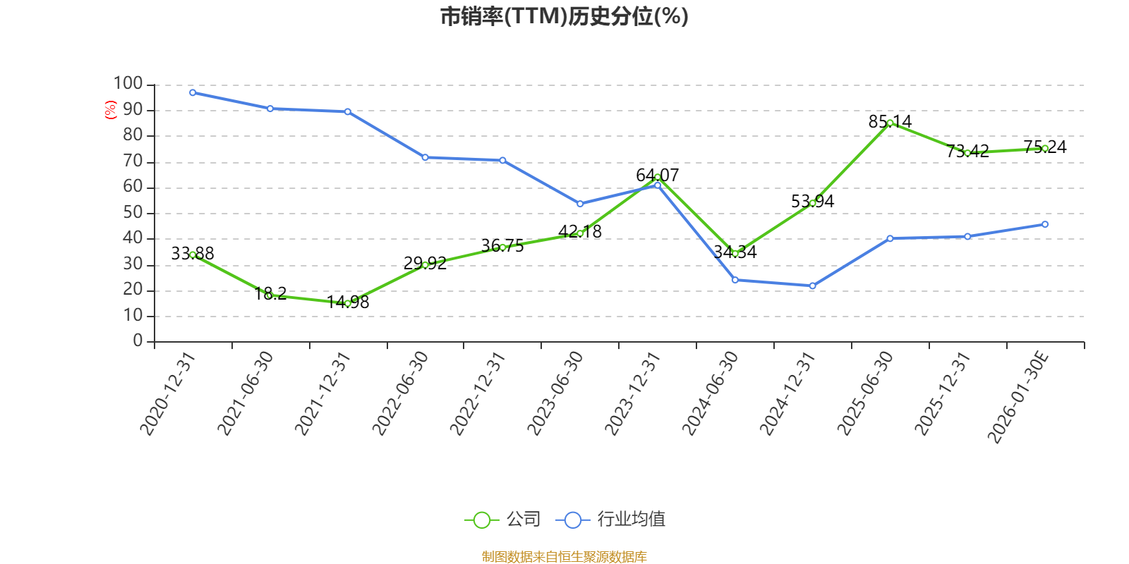 文中市盈率和市销率采用TTM方式,即以截至最近一期财报(含预报)12个月的数据计算。市净率采用LF方式,即以最近一期财报数据计算。三者的分位数计算区间均为公司上市以来至最新公告日。