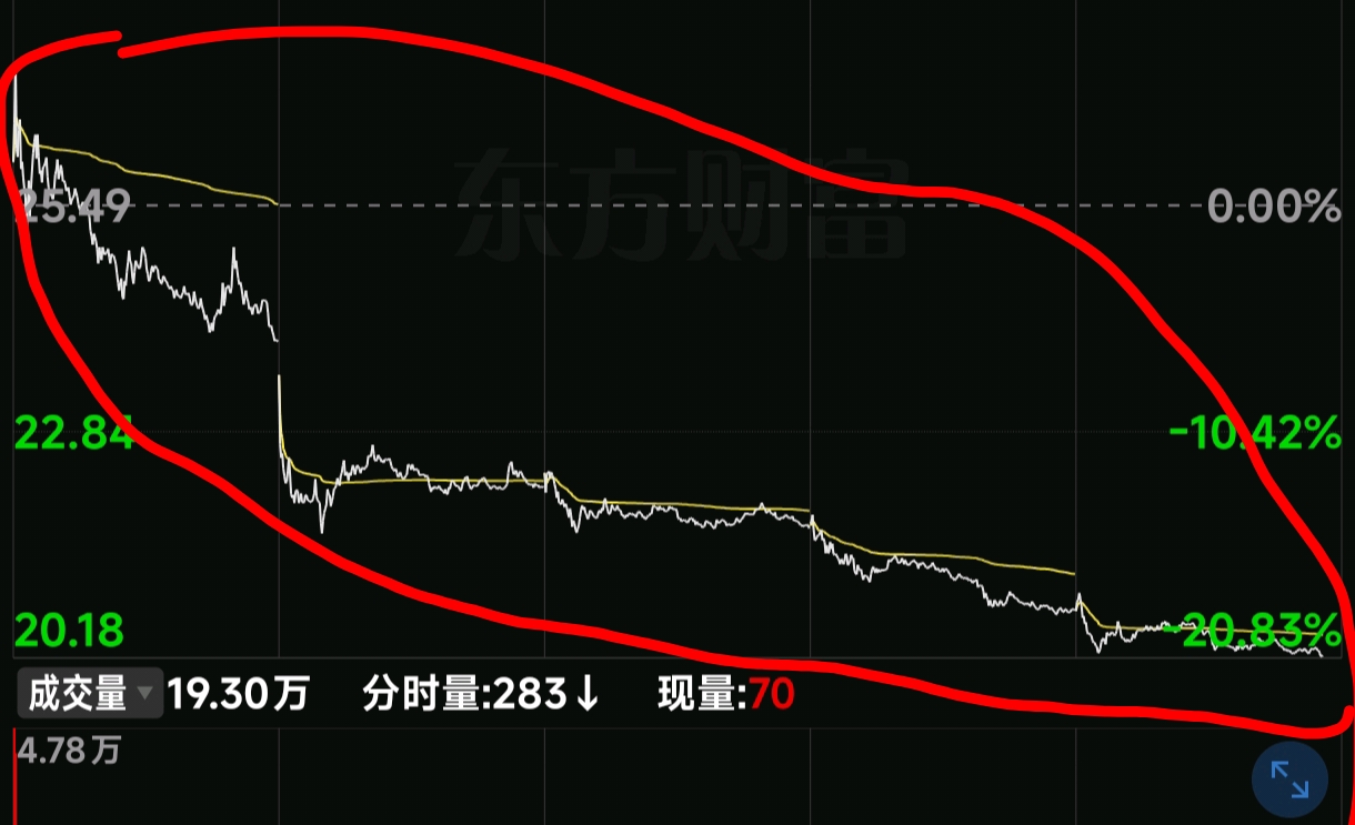 $东杰智能(SZ300486)$ 这5天的走势,20多个点没了,还止不住,真的吓人了 最高峰的时候下跌了8块,利好出货不停