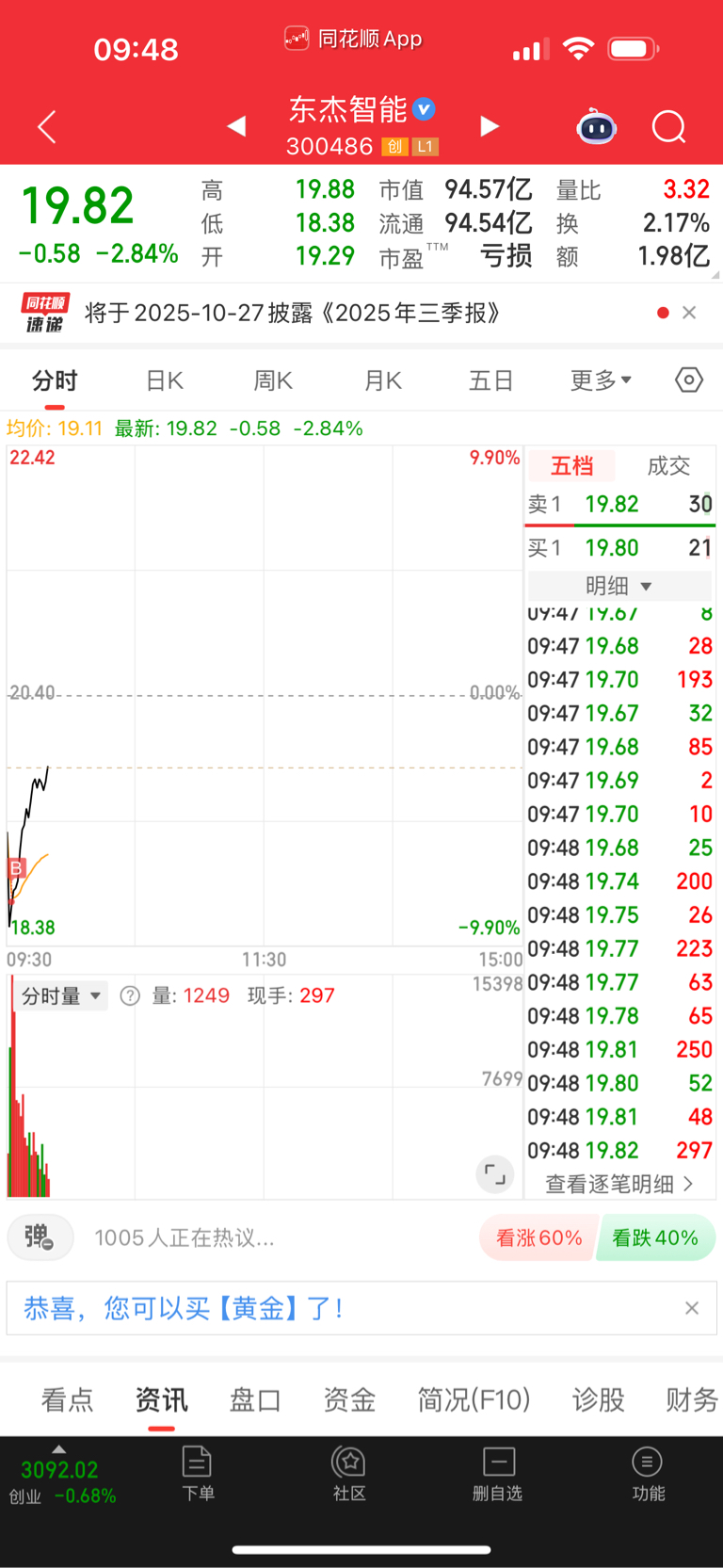 $东杰智能(SZ300486)$ 说到做到,今天我又回来了,小杰杰