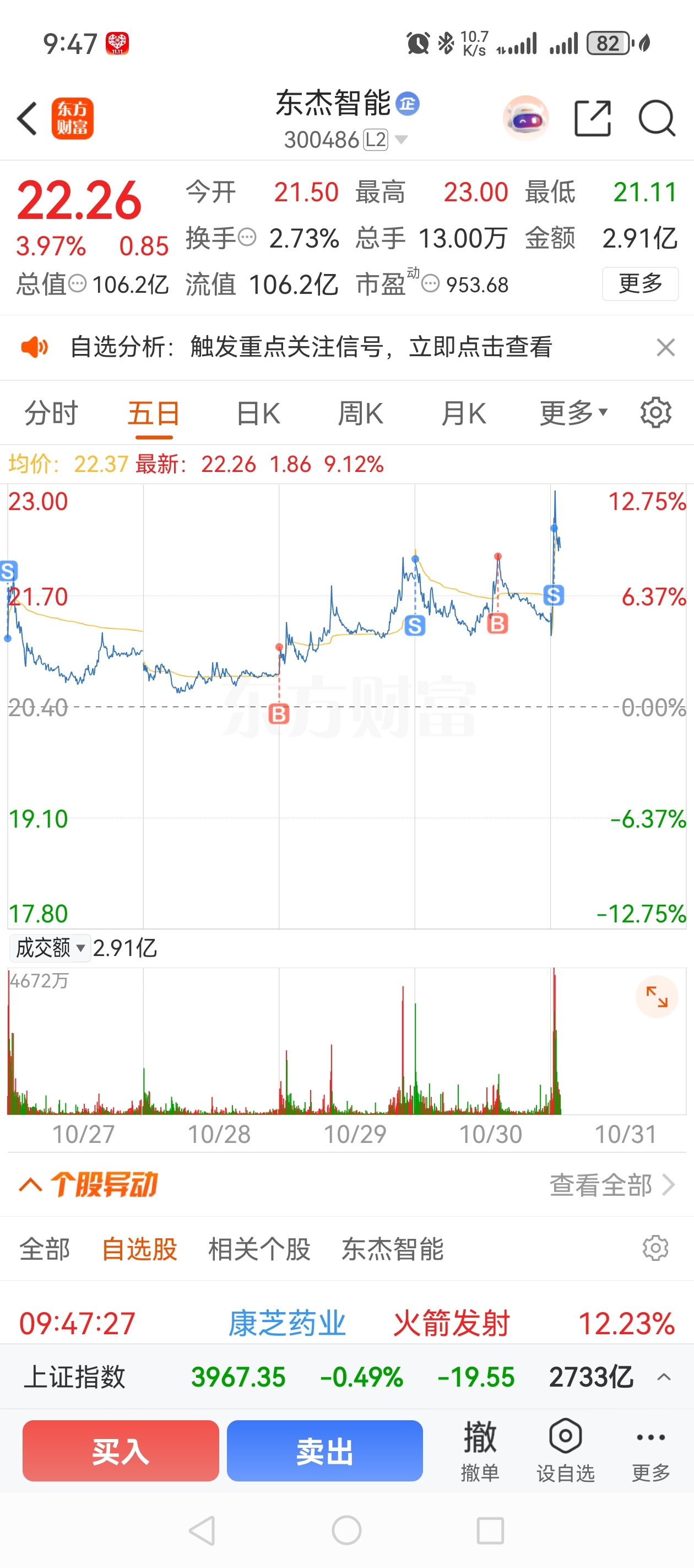 $东杰智能(SZ300486)$ 昨天追高上车,今天把昨天的损失赚回来了,还小赚2000跑了!