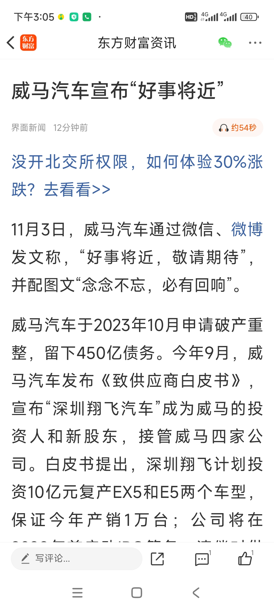 $东杰智能(SZ300486)$ 造成东杰智能23年  24年大幅亏损的主要原因之一的威马好事将近,究竟是怎样的好事?东杰不会去创新高吧?我还没接呢!