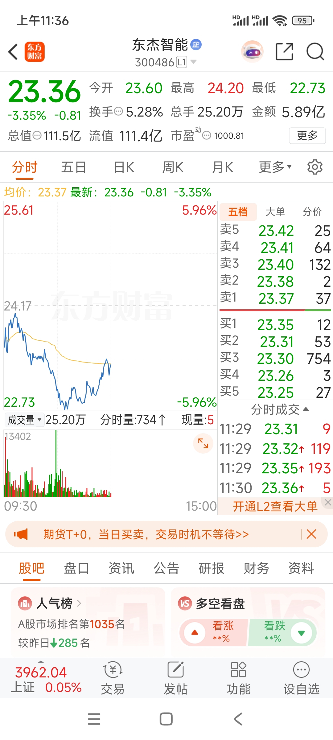 $东杰智能(SZ300486)$ 东杰智能重大利空,22.80 22.98左右已开始接了,一卖就飞,一买就跌,大家小心了