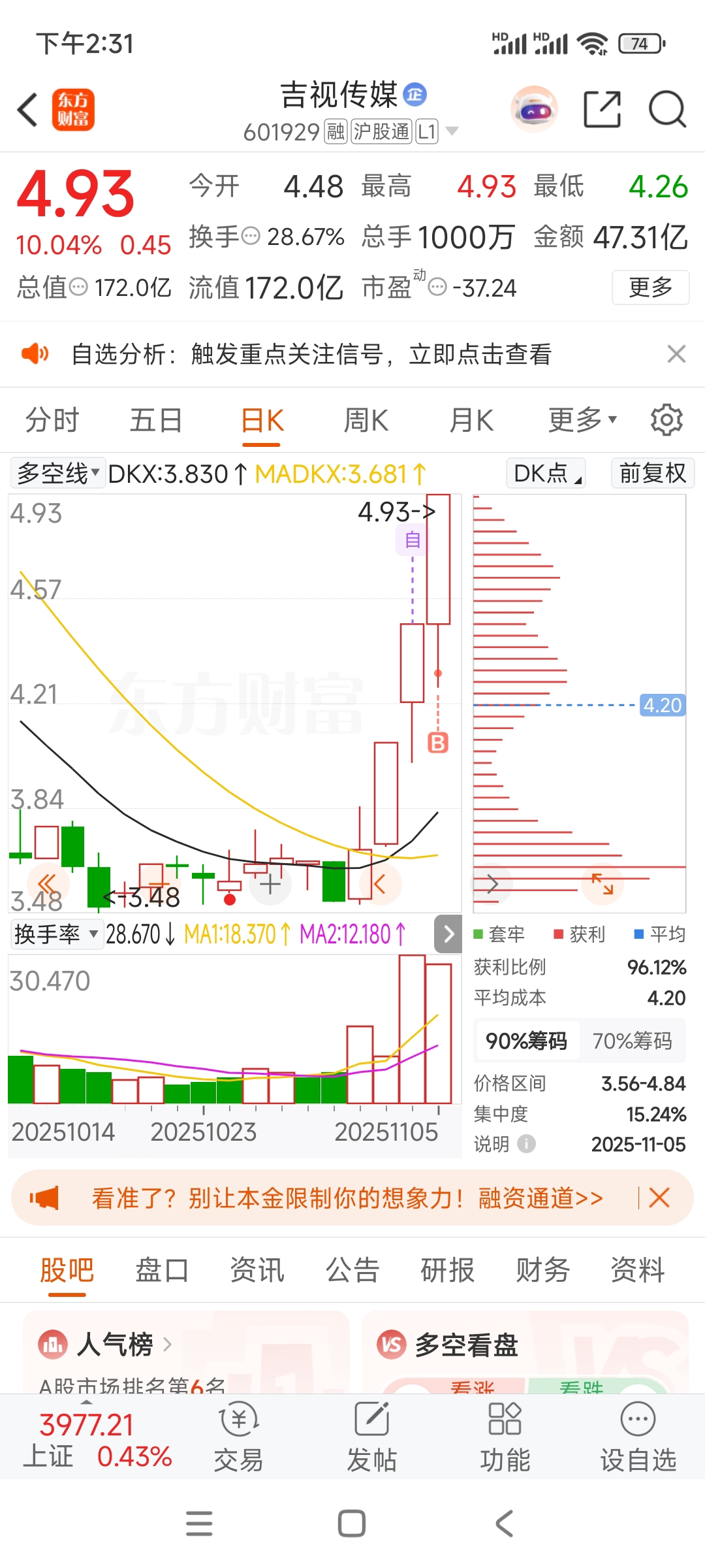 $东杰智能(SZ300486)$ 唉今天全入吉视传媒就好了,14个点到手,东杰智能这走势收盘前不拉上24就不好看了,短期下跌趋势……,拉上去本周就有机会站稳25.50!