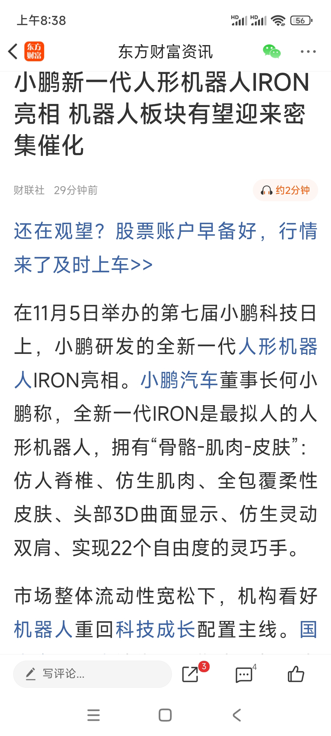 $东杰智能(SZ300486)$ 小鹏的仿生机器人都出来了,连胸等关键部位都仿生肌肉感,难怪很多人质疑是穿了皮衣的真人,侧面说明做得比较成功了……!