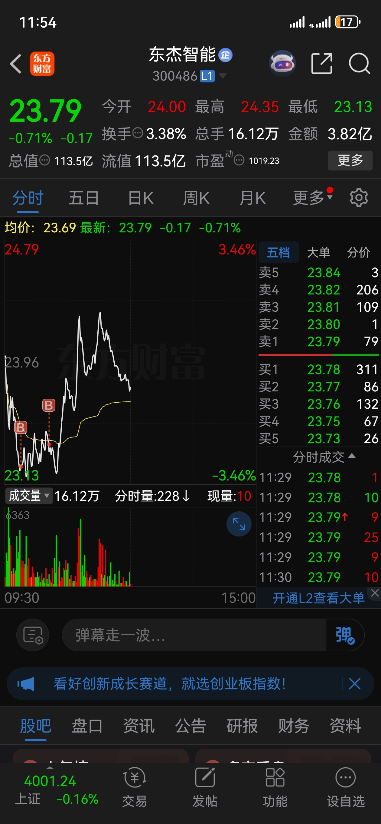 $东杰智能(SZ300486)$ 干就完了!下午收盘起码+2#炒股日记#