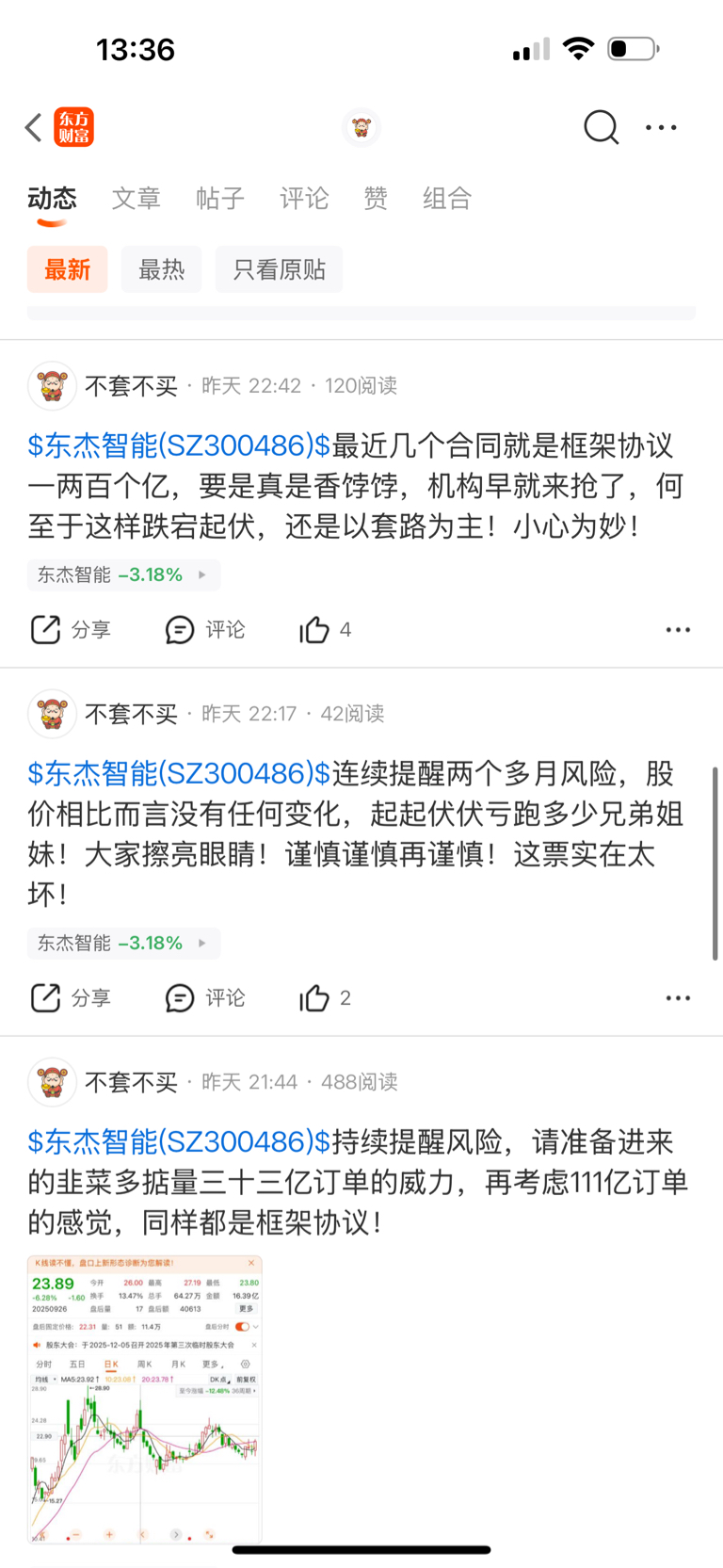 $东杰智能(SZ300486)$ 昨天夜晚连发几条提示风险,被一群勾勾们围攻,积德行善的事,哎,自己被套这么久,真是想救一个是一个,可惜这票太多人洗干净脖子往里钻…