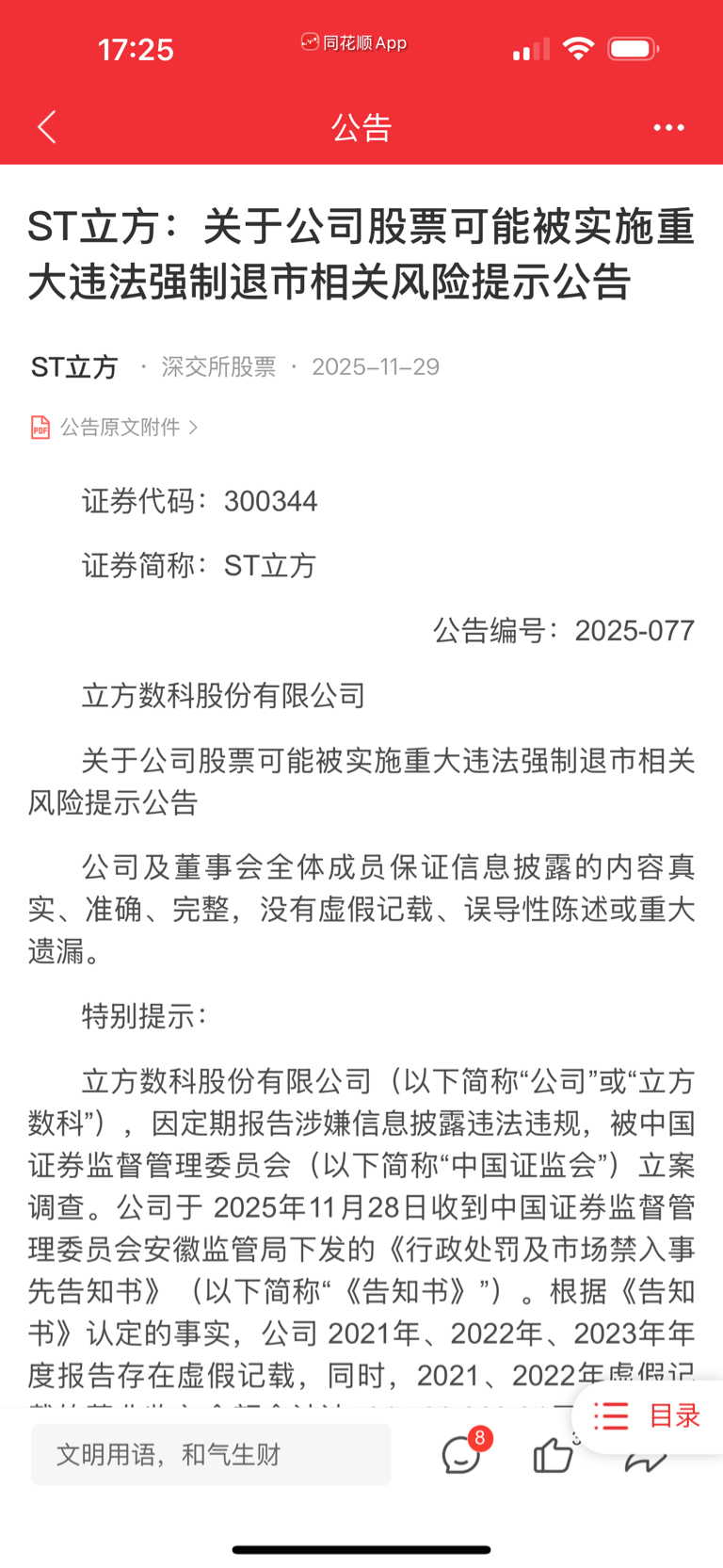 去年的战略合作伙伴今日或被强制退市。不知道是不是这几天持续跌的原因?官网截止目前