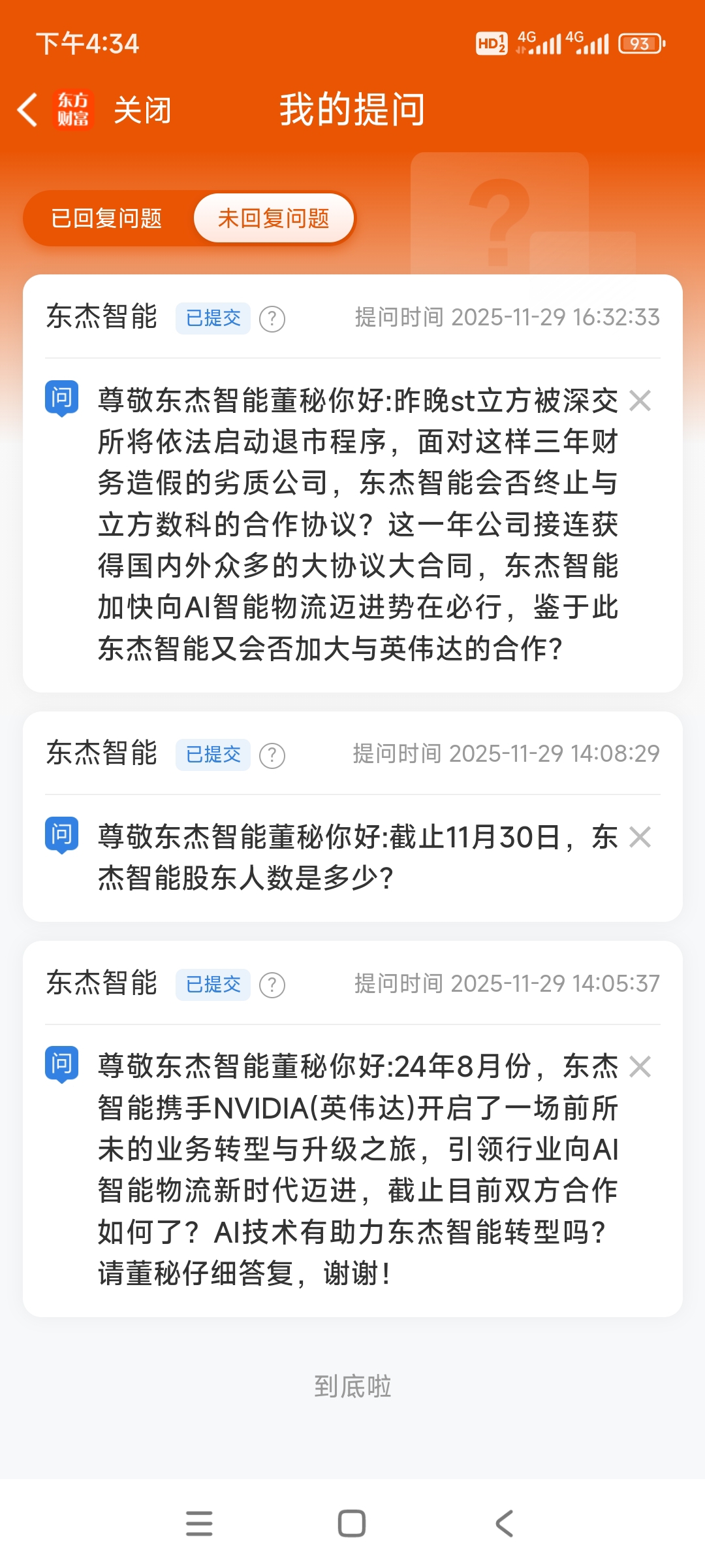 $东杰智能(SZ300486)$ 周末无聊,给爱化饼的东杰智能提了几个问题,看看董秘回不回答?还是选择性回答?一直不喜欢向上市公司提问,真提问起来,感觉有好多问题要问,今天已经提问三个了,过几天或下周在问吧!
