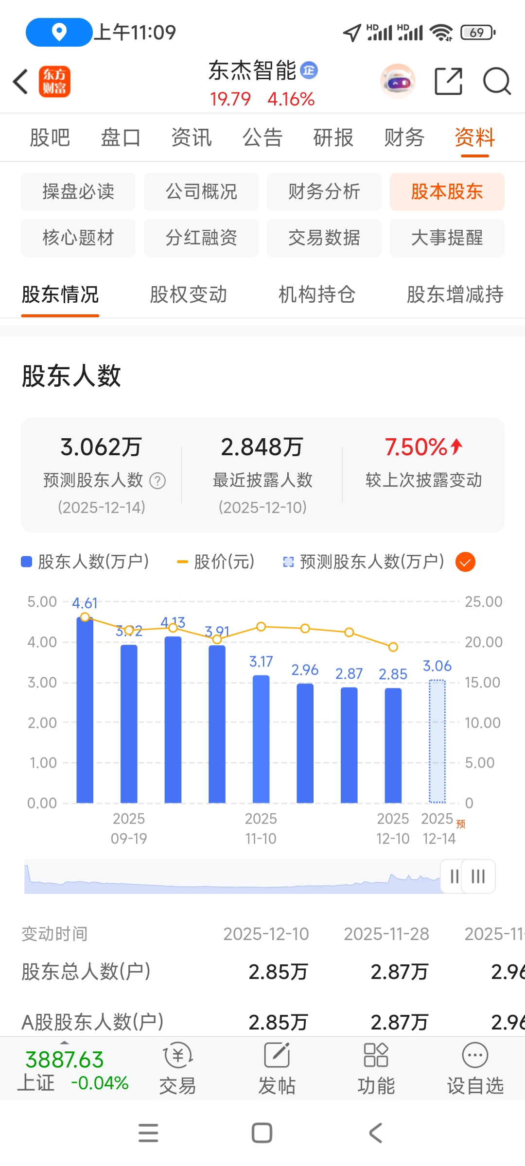 前天股东人数预测三万了,昨天拉升反而少了近一千八,股东人数下去不易呀……!