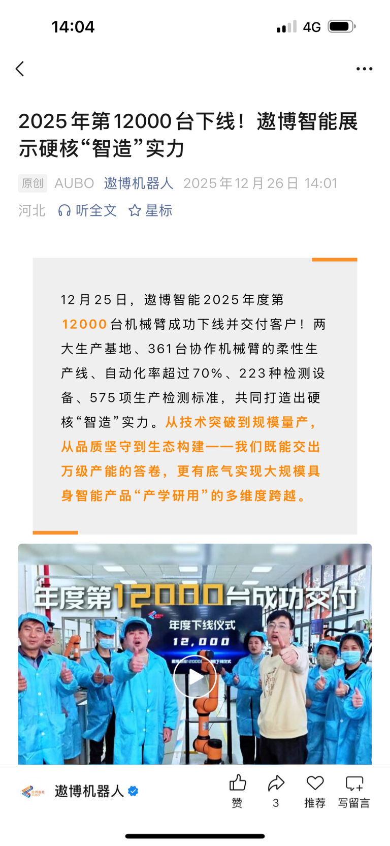 $东杰智能(SZ300486)$ 人形机器人业绩还是未知数,但作为协作机器人王者的傲博有实打实的业绩!还联合华润的老麦步入了具身机器人领域!