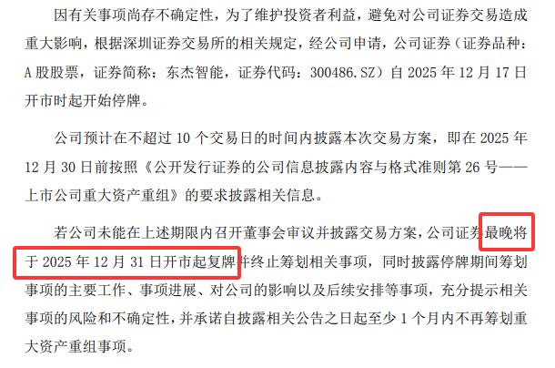 公告说的复牌时间清清楚楚,最晚将于 2025 年 12 月 31 日开市起复牌。不用猜了