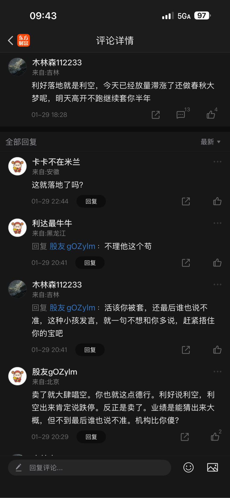 温馨提示: 1.根据《证券法》规定,禁止编造、传播虚假信息或者误导性信息,扰乱证券市场;2.用户在本社区发表的所有资料、言论等仅代表个人观点,与本网站立场无关,不对您构成任何投资建议。用户应基于自己的独立判断,自行决定证券投资并承担相应风险。《东方财富社区管理规定》
