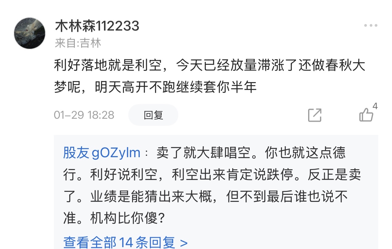 温馨提示: 1.根据《证券法》规定,禁止编造、传播虚假信息或者误导性信息,扰乱证券市场;2.用户在本社区发表的所有资料、言论等仅代表个人观点,与本网站立场无关,不对您构成任何投资建议。用户应基于自己的独立判断,自行决定证券投资并承担相应风险。《东方财富社区管理规定》