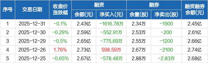 蓝晓科技:连续3日融资净偿还累计2945.38万元(12-31)