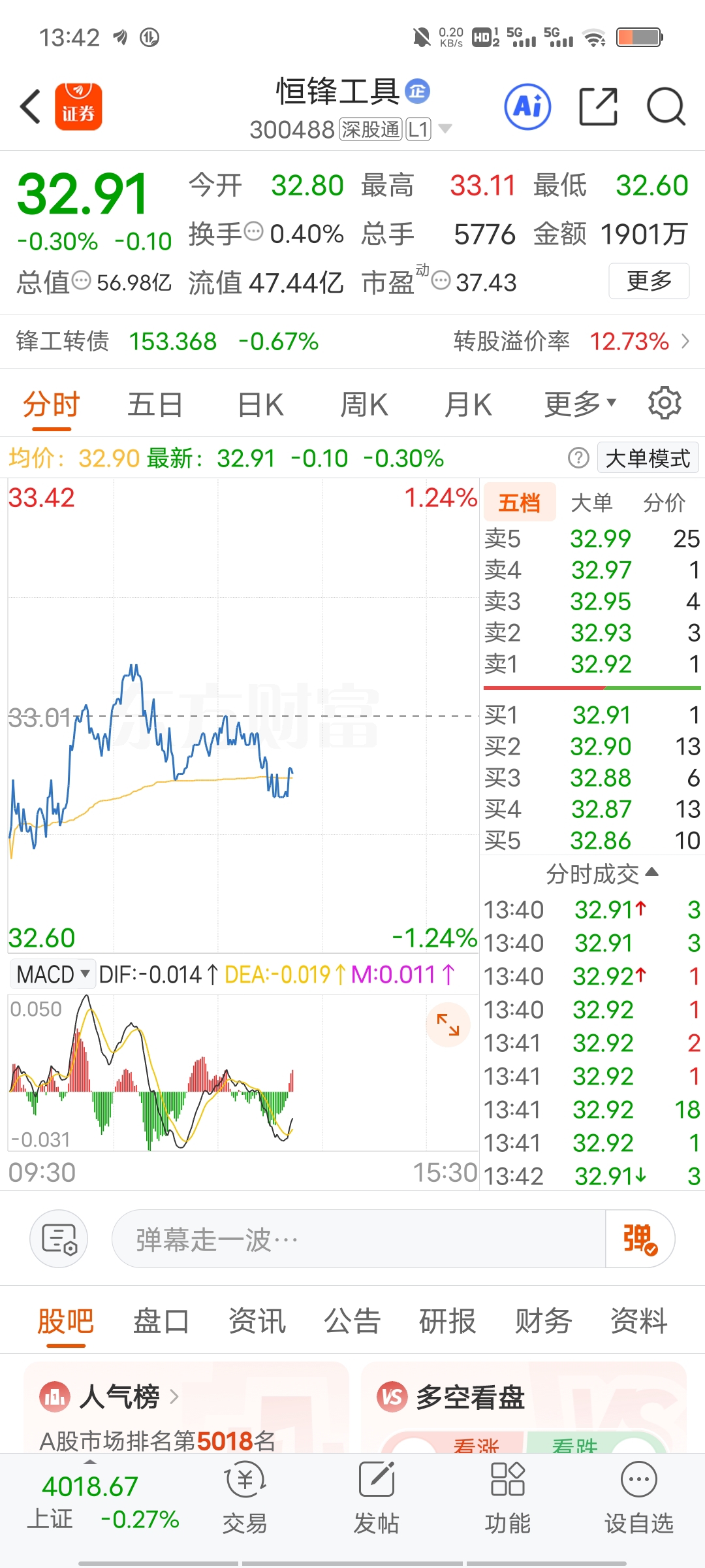 $恒锋工具(SZ300488)$ 有史以来买到最的股