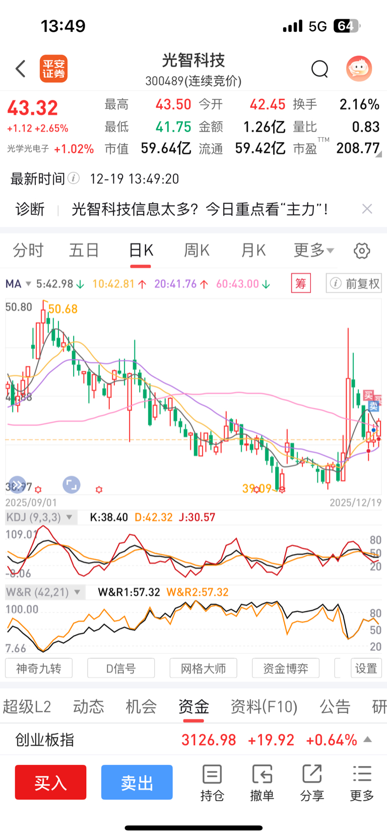$光智科技(SZ300489)$ 不敢长线,主打个有肉就走