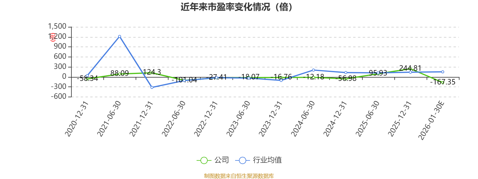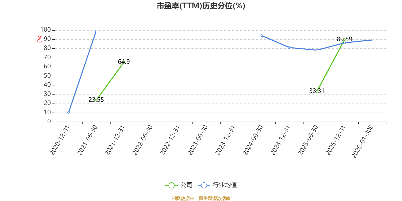 市盈率、市净率为负时,不显示当期分位数,会导致折线图中断。