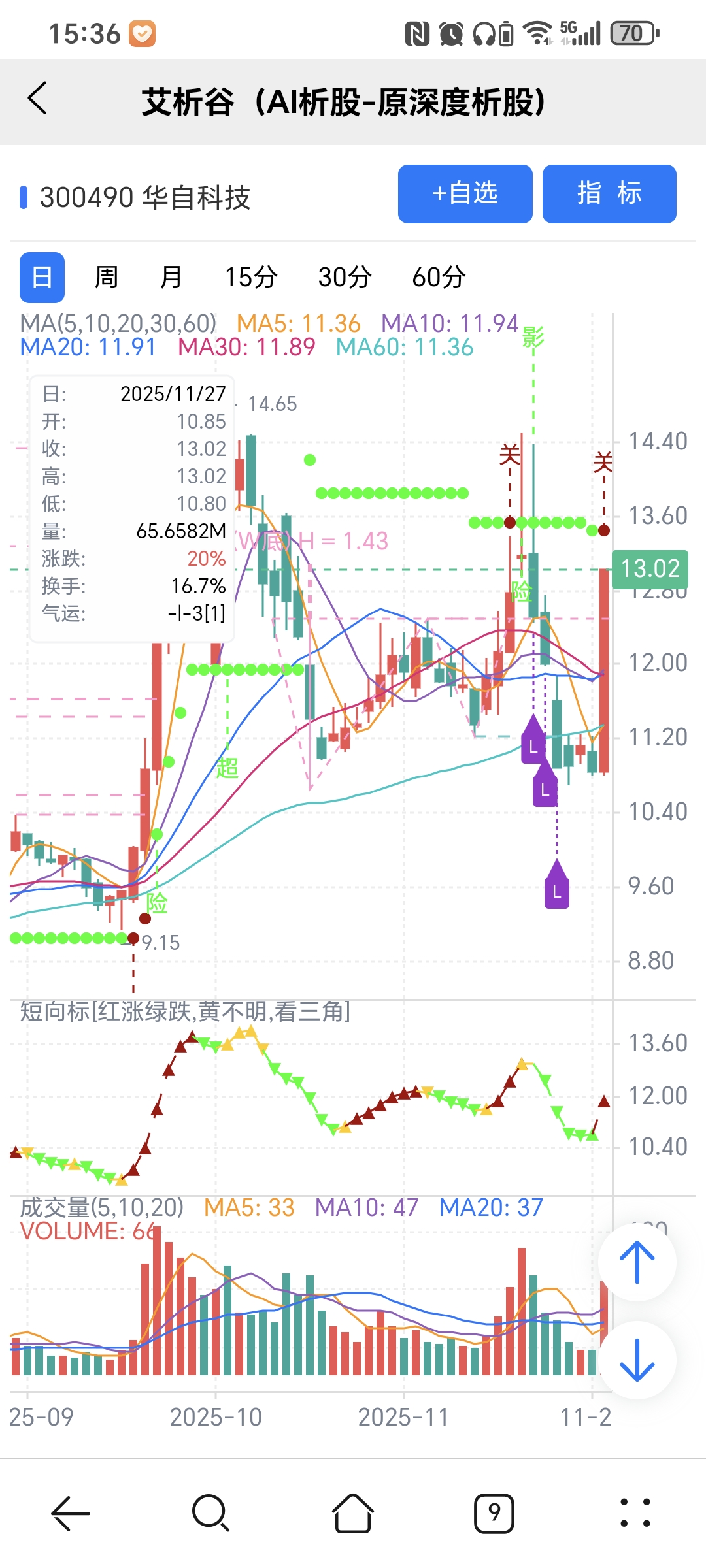 红绿小圆点是艾析谷的量化指标-超级短趋线,是趋势跟踪+突破类的量化指标,完全免费。