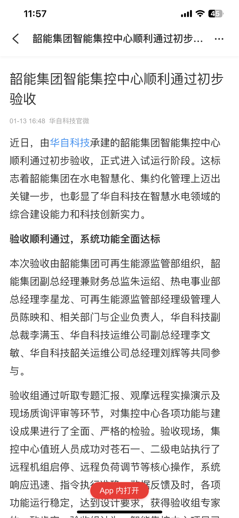 $华自科技(SZ300490)$ 公司承建的韶能集团的智能集控中心顺利通过验收