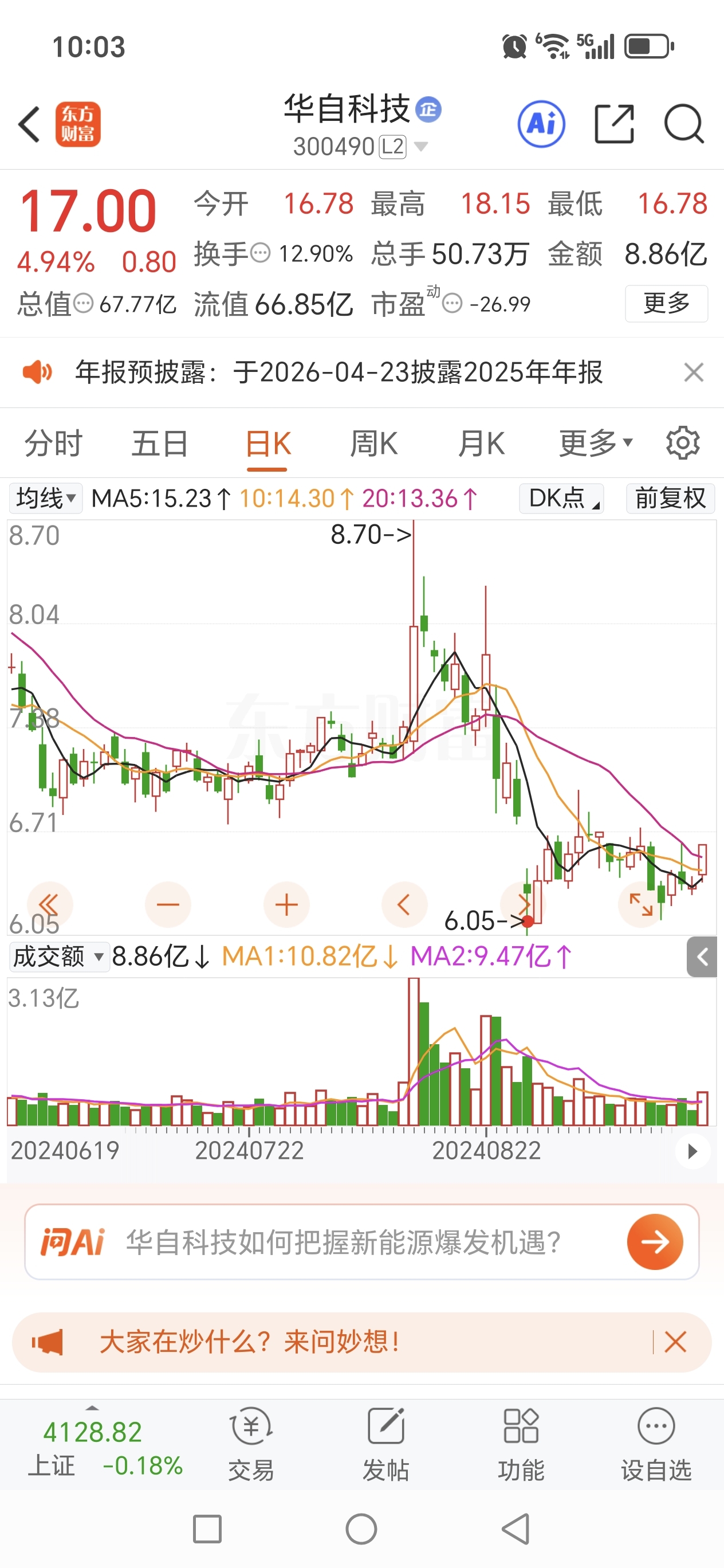 $华自科技(SZ300490)$ 就近几年而言,华自每次高位避雷针形态,短中期都是一轮下跌的开启。大家注意了,这波拉升大概率结束,回调开始了。