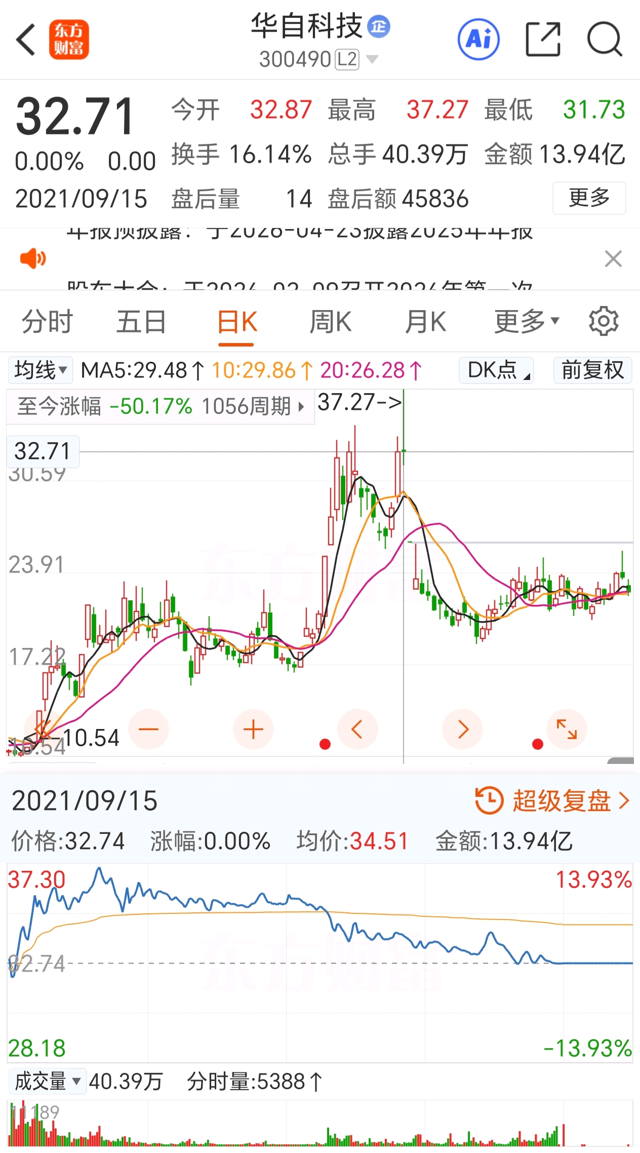 $华自科技(SZ300490)$ 今天的走势跟这一天一模一样