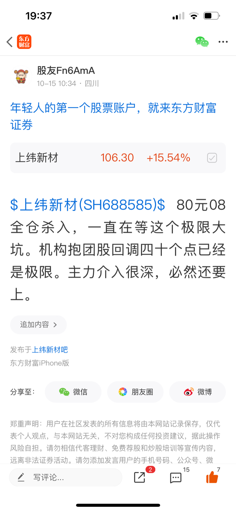 温馨提示: 1.根据《证券法》规定,禁止编造、传播虚假信息或者误导性信息,扰乱证券市场;2.用户在本社区发表的所有资料、言论等仅代表个人观点,与本网站立场无关,不对您构成任何投资建议。用户应基于自己的独立判断,自行决定证券投资并承担相应风险。《东方财富社区管理规定》