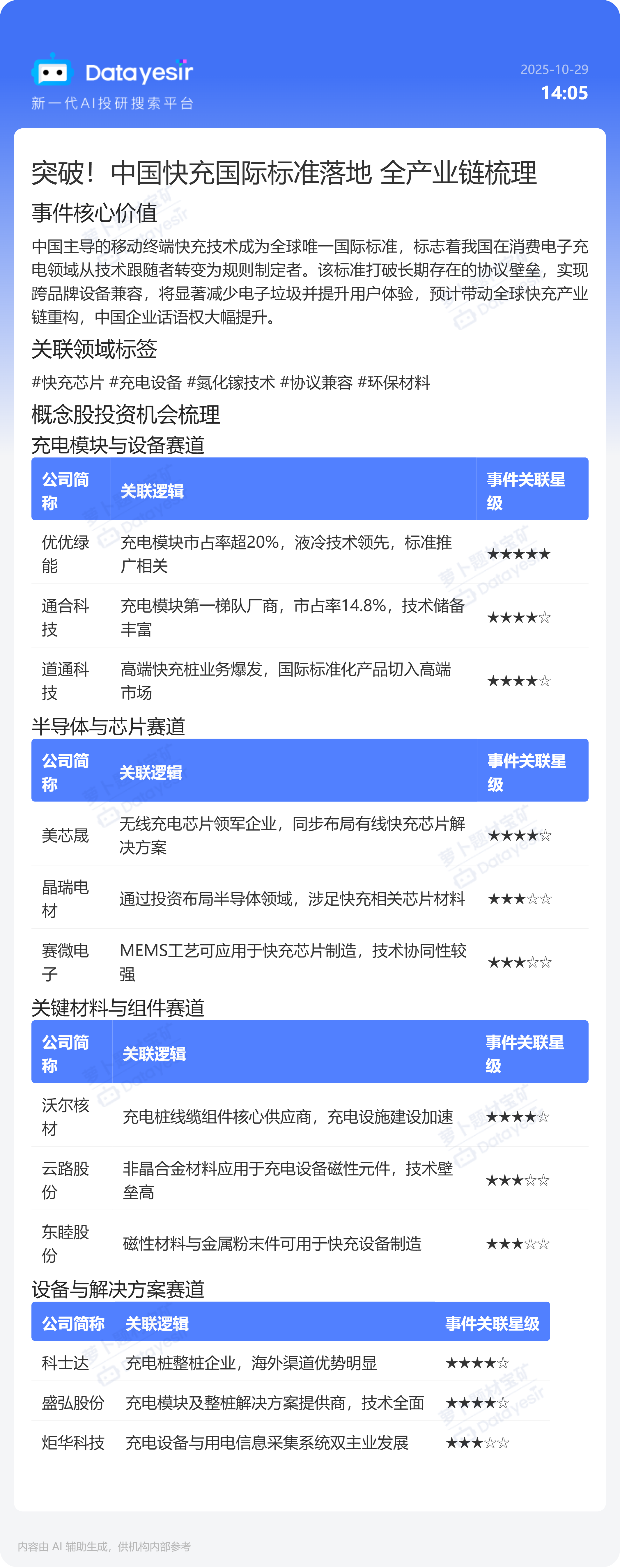 突破!中国快充国际标准落地 全产业链梳理