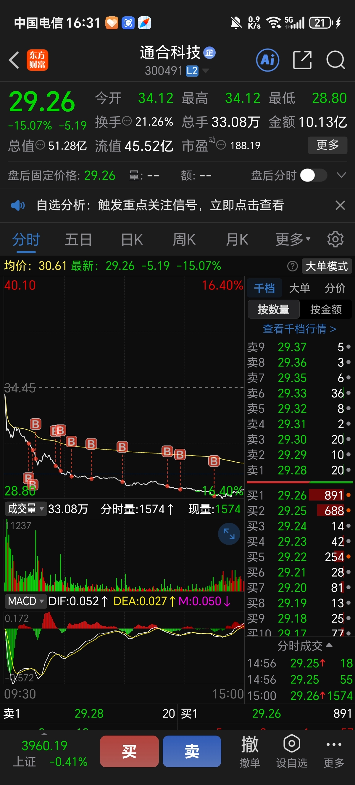 $通合科技(SZ300491)$ 今天被这货亏惨了,跌太狠了,一直补仓十几次,一直想着拉起来,完蛋了,到尾盘还是这个吊样,明天又要接着挨套,明天再补最后一次就不补了,没钱了,后面不管了,随它了