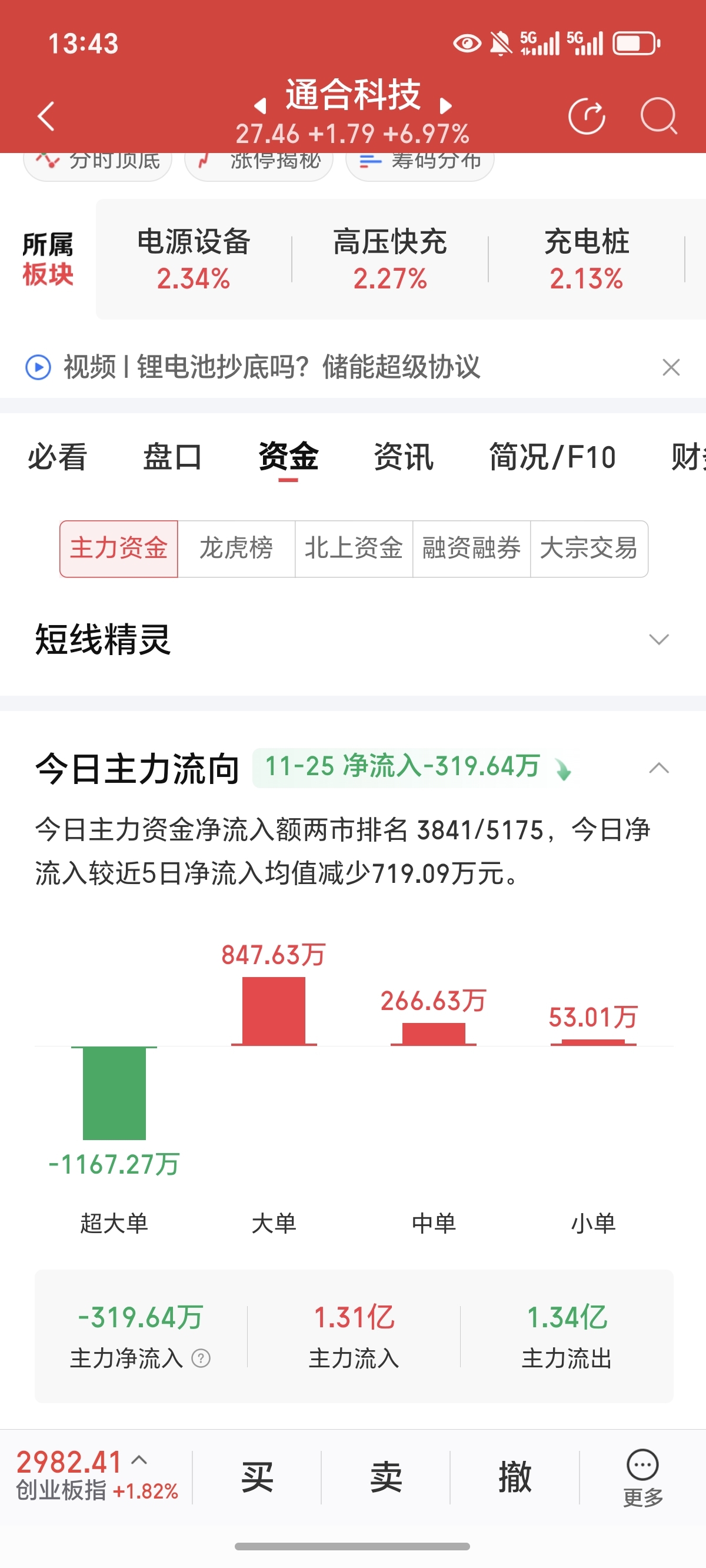 $通合科技(SZ300491)$ 妥妥的拉高出货,早盘资金流入,下午全跑了